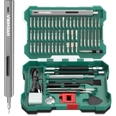 HYCHIKA Precision Cordless Electric Screwdriver, 67 in 1 Repair Tool Kit, Screwdriver USB Charging & LED Lighting, for Mobile Phone, Laptop