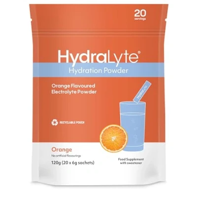 Hydralyte Effervescent Electrolytes Powder Sachets 20 Flavoured Sticks Rapid Rehydration Prevent Dehydration Achieve Optimal Hydration (20 Sachets, Orange)