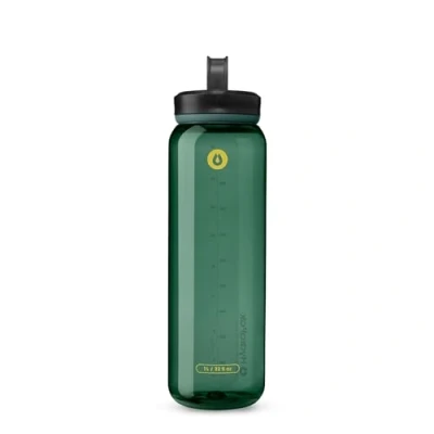CLIP & CARRY CAP: Designed to be comfortably carried with one hand or clipped to packs and straps with a carabiner. 50% RECYCLED CONTENT*: A high clarity bottle made using Tritan Renew material - impact, stain and odor resistant. TETHERED LID: The free spinning and durable tether keeps your lid from falling in the dirt or walking away. SLENDER BOTTLE SHAPE: Designed to fit in your backpack pocket, but versatile enough for everyday use. Fits in most cup holders. WATERGATE COMPATIBLE: Designed to fit our WaterGate Splash Protector perfectly. The WaterGate eliminates the usual spill when drinking from wide-mouth bottles.