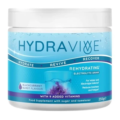 Hydravive® Rehydration Electrolytes Powder 250g Blackcurrent High Strength Vitamin C & 8 B Vitamins: B1, B3, B5, B12 Electrolyte Drinks Effervescent Hydration Tablets Alternative
