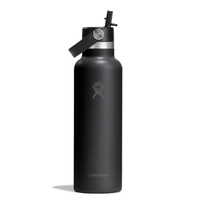 Hydro Flask Standard Flex Straw Cap 621 ml (21 oz) Bottle Stainless Steel, Leakproof, Cupholder Compatible Insulated Cold 24 Hrs Black