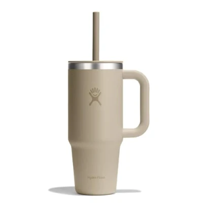 Hydro Flask Travel Tumbler 709 ml (24 oz) with Closable Press in Straw lid Stainless Steel Double Wall Vacuum Insulated Splash Resistant Oat