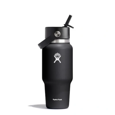 Hydro Flask Wide Flex Straw Travel Bottle 710ml (24 oz) Leakproof, Insulated, Cupholder Compatible Keeps Drinks Cold 24 Hrs Cap Black
