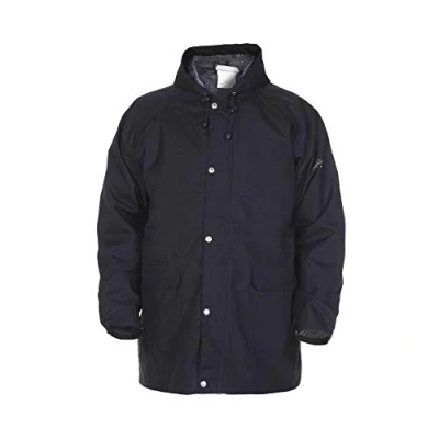 Zip front with storm flap cover and press stud closure Fixed hood Elasticated cuffs with press stud closure 2 front pockets with flap Mesh polyester lining Simply no Sweat (SNS) 210gsm Polyester laminate fabric Highly breathable providing great comfort Durable and cost effective Smooth polyester textile finish Conforms to EN343 Class 3 Water penetration Conforms to EN343 Class 3 Breathability
