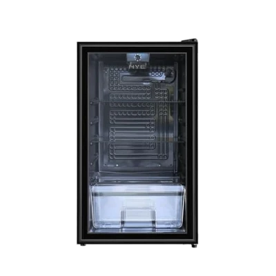 HYE 93L Under Counter Drinks Fridge Black Freestanding Fridge, Glass Door, Energy Efficient 81 kWh/Year, 41 dB, Adjustable Shelves & Crisper, Home Bar Office Mini RF01DF92B23