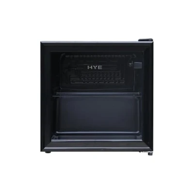 HYE Table Top Beverage Cooler Compact 46L Black Drinks Fridge, Energy Efficient 78 kWh/Year, LED Interior Light, Freestanding Mini Fridge for Home, Office, Bar, Entertainment Spaces RF01DF46B23