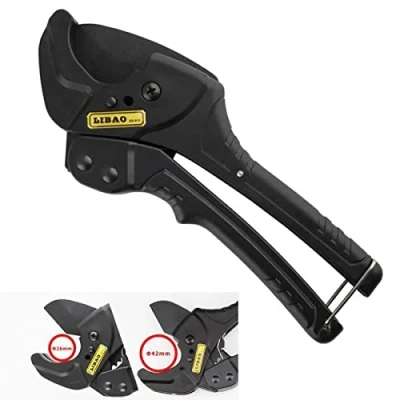 Pipe scissors 26 mm and 42 mm, PVC pipe cutter, for cutting PPR PVC plastic pipes and sanitary pipes This manual pipe cutter is suitable for 26 and 42mm PPR and PE pipes, the maximum diameter can be 42mm, which makes it easier to use. Superior Features The pipe cutter is easy to use and the blade is equipped with a heat-treated blade, which is not easy to rust and is not easy to carry, which can save you time. High Quality Material The plastic pipe cutter is made of high quality aluminum alloy with high hardness, good toughness and long service life. Humanized design: non-slip handle design, ergonomically balanced force, strong shear force, non-slip and wear-resistant, reduces hand fatigue and improves work efficiency. Easy to Carry The pipe cutter comes with a lock at the end, which can lock the handle when not in use, which is very convenient when you go to work. Wide application: the pipe cutter is widely used for cutting most types of plastic (PVC, CPVC, PPR, rubber hoses, etc.)..Material: stainless steel 5Cr13. Hardness: HRC50-55HRC Finish: Teflon coating. Handle material: top handle made of nylon PA6, lower handle made of aluminium metal. Cutting diameter range at two speeds: 26/42 mm. Material app., Manufacturer: HYECHO