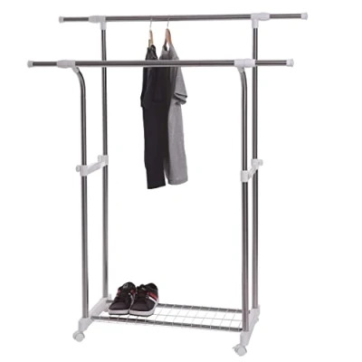 Hyfive Clothes Double Rail Adjustable Extendable Storage Hanging Rack Robe
