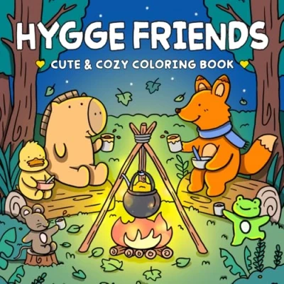 Hygge Friends: Cute and Cozy Coloring Book for Adults Teens Featuring Adorable Animal Characters in Heartwarming Scenes Relaxation (Hygge Coloring)