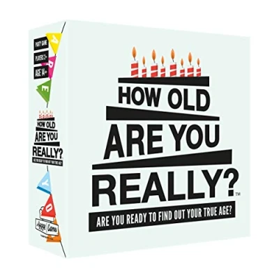 Do you own a bathrobe? Do you save the packaging when you buy a new phone? Would drawing something on a dirty car window be just plain unthinkable? How old are you really? Is a hilarious and revealing game with more than 300 entertaining questions designed to diagnose your true age, no matter what it says on your driver's license! You're as young or old as you act, so … how old do you act? Get ready for lots of laughs, surprises, and heated discussions! A great birthday gift, as well as perfect for your next party or dinner with friends and family. The ideal gift for anyone who already has everything … except their true age! Includes 110 cards with 330 entertaining questions. For 2 or more players. Ages 14 and up. Box size 5. 7 x 5. 7 x 1. 8 inches., Manufacturer: Hygge Games