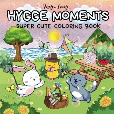 Hygge Moments Super Cute Coloring Book: 40 Illustrations for Adults & Teens Featuring Adorable Animals Characters Stress Relief