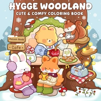 Hygge Woodland: Cozy Coloring Book for Adults and Teens Featuring Adorable Animal Characters in Winter Forest Scenes Relaxation