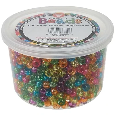 Hygloss Plastic Pony Glitter Jelly Beads, 6 x 9 mm, Assorted Colors, Pack of 1000