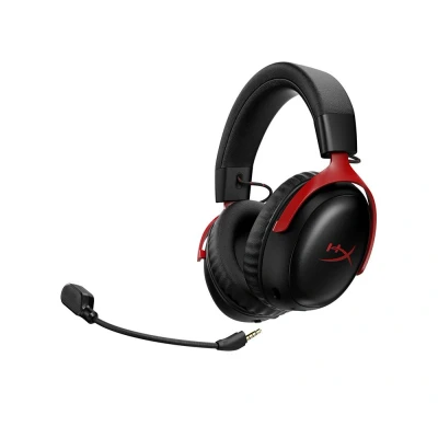 HyperX Cloud III S Wireless Gaming Headset for Multi Platform, 2.4GHz, Bluetooth, Battery Life up to 120 Hours 53mm Angled Drivers, 10mm Detachable Mic, Customizable Black/Red