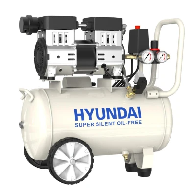 Powerful And Compact Air Compressor The HY7524X is a powerful yet compact 750w direct-drive oil-free low noise air compressor from Hyundai. Suitable For Various Jobs Designed for DIY and trade applications the HY7524X silenced oil-free air compressor is ideal for spray-painting, blowing away dirt and dust, nailing, inflating tyres or operating air tools. Slow-running for 50% longer life A slow-running, 4-pole motor operating at 1450 RPM, like the Hyundai HY7524X air compressor, offers reduced noise and results in less wear and tear on internal components, which can extend the compressor's lifespan. Running at a slower speed typically consumes less energy, making it a more energy-efficient solution for users and potentially lowering electricity costs over the long term. Lightweight Compressor Weighing only 22kg the HY7524X whisper compressor is lighter than your conventional piston type air compressor and is completely oil-free, so there is no risk of oil contamination in the air supply. Portable Air Compressor The HY7524 features 2 large wheels and 2 robust rubber mounted feet and a handle for easy manoeuvrability. Powered By Standard Mains Supply Powered by a 750w motor directly connected to the oil-less pump mounted on anti-vibration rubber mounts, makes it is ideal for the home workshop or garage use where conventional residential power sockets are available. Maintenance Free This maintenance-free compressor uses an oil-free diaphragm pump to produce a clean air supply and considerably reduce noise compared to conventional piston compressors. 24L Tank With a 24-litre tank capacity, this compressor provides an air displacement of 5.2CFM/ 150 litres per minute and a discharge pressure of 7 bar/ 100 psi. Pressure Control System The pressure control system automatically stops and starts the motor to maintain the pressure in the air tank and comes with a twin gauge air pressure regulator. Euro Quick Release Connectors Fitted with Euro quick release connectors this compressor is fitted with a standard 13A UK Plug. Compressor Care Pressure safety valves on Hyundai air compressors have been updated in compliance with the latest CE certification standards. Air and moisture should always be released using the drain valve located on the bottom of the tank. In The Box: HY7524X Electric Air Compressor User Manual Warranty Covered by Hyundai 2 year warranty. Key Features Low noise air compressor. OIL FREE - maintenance free and no oil contamination. Hyundai 750w / 230v direct drive electric motor with UK 3-pin 13amp plug. 24 litre tank capacity provides an air displacement of 5.2CFM/ 150 litres per minute and a maximum pressure of 118psi / 8bar. Pressure regulator with twin pressure gauges and twin quick release ‘Euro’ type air connectors and water / condensation trap. Includes automatic cut out switch, safety valve and pressure regulator. Covered by Hyundai 2 year warranty. Full spares available to maintain your air compressor for years to come.