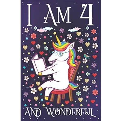 I am 4 and Wonderful: A Happy 4th Birthday Journal for Girls Cute Unicorn Notebook Year Old Girl or Daughter with Story Space Party Diary Supplies Anniversary Gift Ideas Her