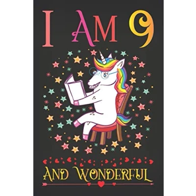 I am 9 and Wonderful: Funny Unicorn Activity Journal Notebook, A Happy Birthday Years Old Gift Composition Sketchbook for Teen Girls, Diary Keepsake Kids, 9th Gifts Her