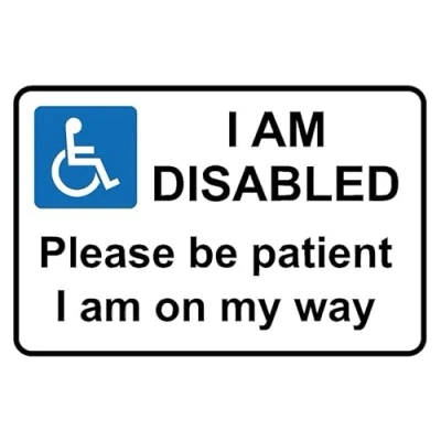 I am disabled please be patient on my way door sign Self adhesive sticker (300mm x 200mm)