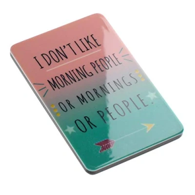 Perfect gift for Birthdays, Christmas or any other occasion Fun, bold design featuring funny ‘I Don’t Like Morning People or Mornings or People’ quote Crafted from thick acrylic, this strong magnet will be a fun and colourful addition to your fridge Dispatched with presentation card as shown Unique design created in Wales