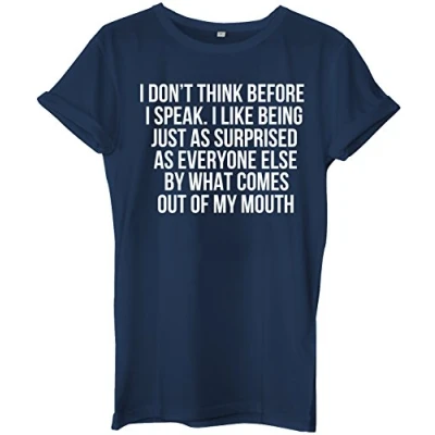 I Don't Think Before Speak. Like Being Just As Surprised Everyone Else by What Comes Out My Mouth Unisex Ladies Womens Mens Hipster Slogan T Shirt Small Navy