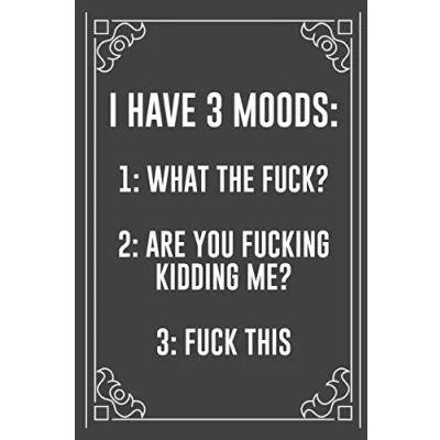 I HAVE 3 MOODS: 1: WHAT THE FUCK? 2: ARE YOU FUCKING KIDDING ME? 3: FUCK THIS: Funny Blank Lined Ofiice Journals For Friend or Coworkers