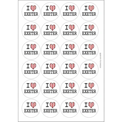 I Heart Love Exeter Circular Matt Paper Stickers A4 Sheet of 24 (Each Sticker is 45mm Diameter)