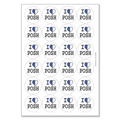 I Heart Love Posh Circular Matt Paper Stickers A4 Sheet of 24 (Each Sticker is 45mm Diameter)