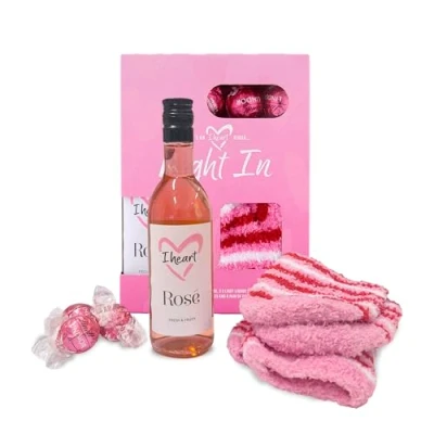 I Heart Rose is a fresh and fruity rose wine bursting with strawberry and red berry flavours. Discover our irresistible selection of Lindor Strawberries Cream Chocolate Truffles. Since 1845, the Lindt Master Chocolatiers19 have combined their expertise with the highest quality ingredients from around the world to produce the finest chocolates. Luxuriously smooth and sweet white chocolate and fruity strawberry truffles, hiding irresistibly creamy, melt-in-the-mouth, centres. The cosy, stripey socks bring the whole gift together, giving the recipient an indulgent treat.