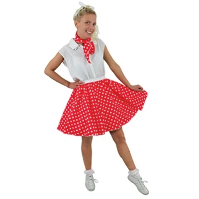 Suitable for dance shows and theatre productions Suitable for 1950's Grease fancy dress and rock and roll Good quality product Rock n Roll your way to your next fancy dress party with our quality Polka Dot Skirts and Matching Neck Scarf! Includes: Short Adults Elasticated Waist Polka Dot Skirt & Matching Neck Scarf Standard – UK 8/12 // 17 Inches Long Perfect For: 1950s Fancy Dress & Dance Shows / Productions, Manufacturer: I Love Fancy Dress Limited