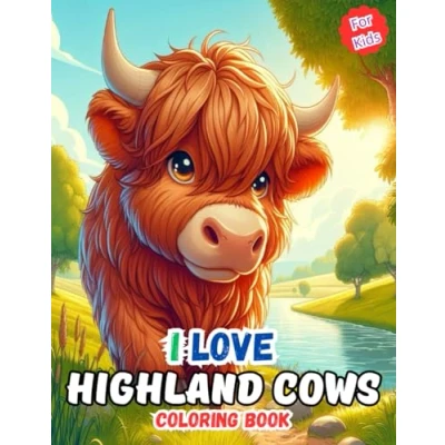 I Love Highland Cows Coloring Book For Kids: Fun and Cute Scottish Cow Pages Kids Ages 4 8, 8 12 Years Old