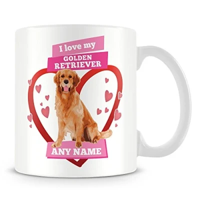 I Love My Golden Retriever Dog Mug Personalised Gift Customise with Name Pink