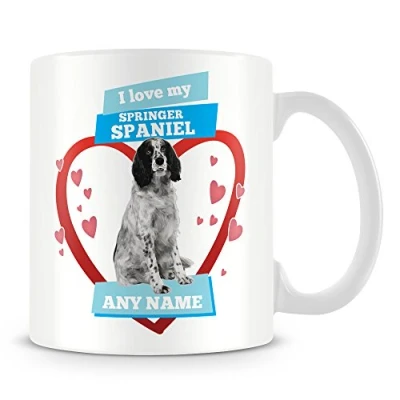 I Love My Springer Spaniel Dog Mug Personalised Gift Customise with Name Blue