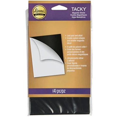 Aleene's Magnetic Tacky Sheets can also be cut into custom shapes and sizes to maximize your creativity Easy to use peel and stick Contains 4-pack 4"x6" sheets Aleene’s Magnetic Tacky Sheets can also be cut into custom shapes and sizes to maximize your creativity.Easy to use peel and stick.Contains 4-pack pof 4"x6" sheets