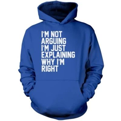 I'm Not Arguing Just Explaining Why Right Unisex Hoodie Funny Moody Teen Grumpy Old M Blue