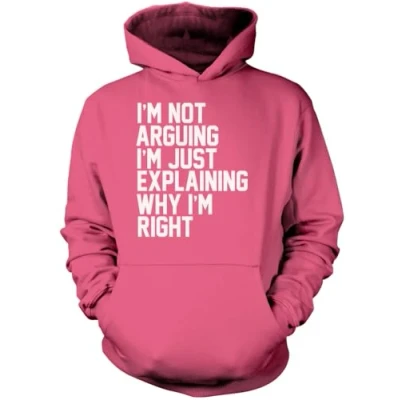 I'm Not Arguing Just Explaining Why Right Unisex Hoodie Funny Moody Teen Grumpy Old M Pink
