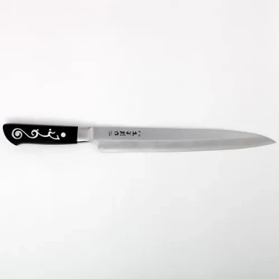 Kitchen KnivesIf you're more of an adventurous cook then this I.O.Shen 270mm Sashimi Knife will be the perfect choice for you to add to your favourite kitchen knives.Crafted from a durable, high-qualuty stainless steel, the ultra-sharp blade will cut right through the toughest cuts of fish, and thanks to the extra long, pointed tip that boasts the innovative Triplex Technology and it will do so with complete precision - leaving you only with the pieces sized exactly as you need them.To ensure extra safety, this I.O.Shen 270mm Sashimi Knife is designed with an ergonomic handle with grips that allow you to easily hold it during use, and although the handle is robust, it feels lightweight to use. The handle also features essential Thai Thang embellishments.To keep this I.O.Shen 270mm Sashimi Knife in the best condition possible, it should be cleaned only with a light detergent and some warm water - it should never be washed in the dishwasher or submerged in water.