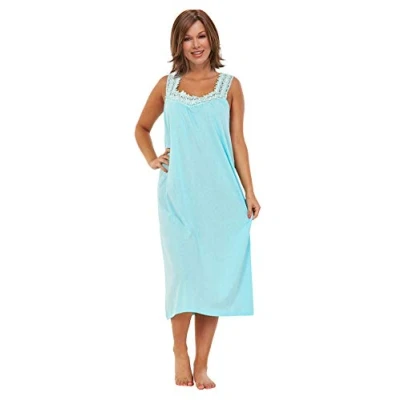 i Smalls Ladies Sleeveless Plain 100% Cotton Nightshirt Nightie (M) Mint Lace