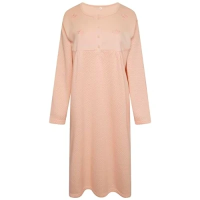 i Smalls Ladies Thermal Fleece Nightdress Super Soft Long Sleeve Floral Nightie (XXL) Lush Peach