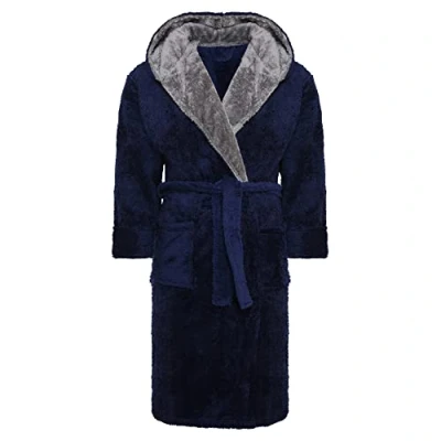 i Smalls Mens Dressing Gown Super Soft Fleece Hooded Housecoat Robe with Belt S to 6XL (XXL) Navy