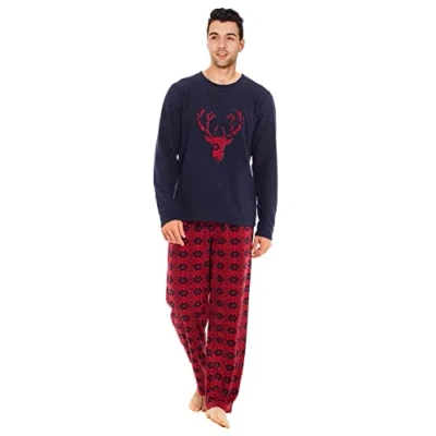 i Smalls Mens Fleece Pyjama Crew Neck Stag Design (Navy) M