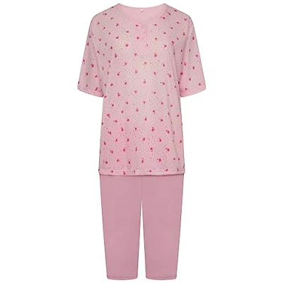i Smalls Women's Cotton Comfy Pyjamas Set Short Sleeve Loungewear Top and Wide Leg Pants Cropped Trousers Soft Nightwear Sleepwear M XXXL (XXL) Pink
