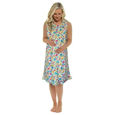 i Smalls Women's Maternity Floral Nightie Super Soft Button Front Nursing Nightdress Sleeveless Breastfeeding Nightshirt (20 22) Mixed