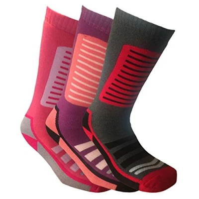 Ladies Pack of 3 High Performance Thermal Ski Socks. Long Hose with Stretch Comfort Top & Padded Shin Bone Protection. Features Grip Zones & Extra Cushioning for Extra Foot & Ankle Support. Helps to Keep Feet Warm & Dry in Extreme Conditions. Made From: 65% Acrylic, 23% Nylon, 10% Polyester, 2% Elastane.