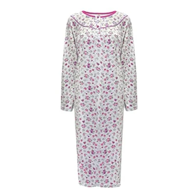 i Smalls Women's Thermal Nightdress 100% Brushed Cotton Button Front Long Length Nightie L to 3XL (XXL) Pink