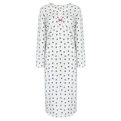 i Smalls Womens Ultra Soft Thermal Nightdress Orchid Print Ankle Length Button Down Nightie Chemise (16 18) Navy