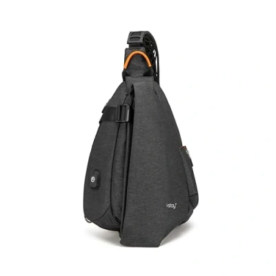i stay Mens Sling Bag with USB Charging Port Waterproof Chest Shoulder Cross Body Bags, 12.3" Tablet ipad can fit badminton or squash racket for men and women, design, Grey,28x42.5x29 cm (W x H L)