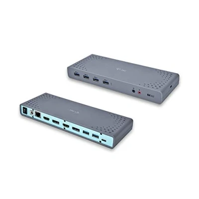 UNIVERSAL COMPATIBILITY: Universal dual display docking station compatible with USB 3.0, USB-C and Thunderbolt 3 notebooks. Supports Windows 7/8/8.1/ 10 32/64 bit, macOS X, Linux Ubuntu 14.04 / 16.04, Android 6 and later. SINGLE CABLE SOLUTION: Connect all of your favourite hardware & accessories via a single USB 3.0, USB-C or Thunderbolt 3 port. GREAT CONNECTIVITY: 2x HDMI and 2x DisplayPort enable the connection of dual 4K/60Hz external displays, or a single 5K/60Hz (lower resolution displays also supported), 6x USB 3.0 ports (USB 2.0 compatible) for connecting your USB devices, supporting USB hot-swap. Separate audio in/out jacks on the front panel for the connection of speaker or microphone. SECURE CONNECTION: Gigabit Ethernet RJ-45 port provides reliable, robust and high-speed internet connection, supporting 10/100/1000 Mbps speeds and Wake-on-LAN (WoL) S3/S4. Kensington lock slot provides additional security, especially for those working regularly in shared offices or public spaces. Optional i-tec Docker Pro software allows seamless MAC address cloning (Windows 7/10). PLUG & PLAY: Supplied with 40W (20V, 2A) professional quality power supply and 100 cm USB-C 3.1 cable with USB-C and USB 3.0 plugs, so you can connect to your USB 3.0, USB-C or Thunderbolt 3 notebook, out of the box.