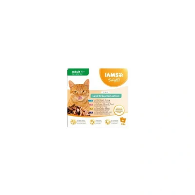 General description IAMS Delights Land & Sea Collection in Jelly for adult cats is a 100% complete and balanced premium wet food that offers an irresistible taste in a convenient multipack. This collection includes four delicious meat and fish flavors that your cat will love: Wild Tuna & Herring, Delicious Salmon & Trout, Roast Turkey & Duck, and Succulent Lamb & Liver. Each recipe is prepared with high-quality ingredients to ensure your cat receives the nutrition they need while enjoying a delightful meal. Technical specifications Protein: 9.2% Fat content: 4.8% Crude ash: 1.4% Crude fibers: 0.4% Moisture: 79.3% Vitamins: Vitamin E: 100 IU, Taurine: 400 mg, Biotin: 100 µg Trace elements: Manganese (manganous sulfate monohydrate): 0.68 mg, Zinc (zinc sulfate monohydrate): 11.3 mg Usage IAMS Delights provides key nutritional benefits for adult cats (1+ year), including high-quality animal protein to help maintain strong muscles, biotin, minerals, and vitamins to promote a healthy skin