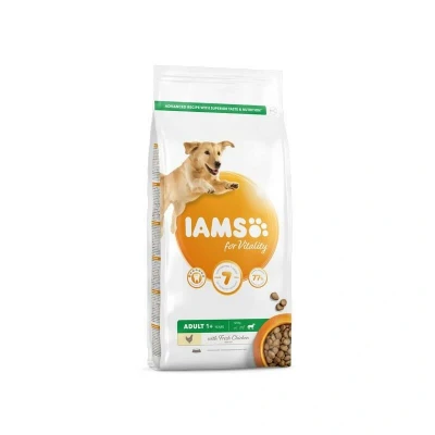 General description IAMS for Vitality Adult Large Dog Food with Fresh Chicken is a 100% complete and balanced nutrition designed specifically for large breed adult dogs. This improved recipe is crafted with high-quality animal protein to support your dog's 7 signs of healthy vitality, ensuring they remain healthy, active, and full of life. Technical specifications Weight: 2 kg Animal protein content: 77% of total protein Usage Supports dental hygiene with crunchy kibbles to reduce tartar build-up. Promotes healthy skin and a shiny coat through omega 3 and 6 fatty acids. Strengthens bones and muscles with essential minerals, vitamin D, and high-quality protein. Enhances immune system support with an antioxidant blend of vitamins C and E. Improves digestive health with a tailored fiber blend, including prebiotics and beet pulp. Nourishes the heart with essential nutrients like taurine.