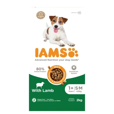 General description IAMS for Vitality Adult Small & Medium Dog Food with Lamb is a 100% complete and balanced nutrition designed for small and medium breed adult dogs. This new and improved recipe is crafted with high-quality animal protein to support your dog’s 7 signs of healthy vitality. With 80% of its protein derived from animal sources, this food ensures your dog enjoys a tasty meal while receiving the expert nutrition they need. Technical specifications Weight: 2 kg Protein source: Lamb and fresh chicken Animal protein content: 80% of total protein Usage Supports dental hygiene with crunchy kibbles to reduce tartar build-up. Promotes healthy skin and a shiny coat through omega 3 and 6 fatty acids. Strengthens bones and muscles with essential minerals and vitamin D. Boosts the immune system with an antioxidant blend including vitamins C and E. Aids digestion with a tailored fiber blend, including prebiotics and beet pulp. Nourishes the heart with essential nutrients like taurine.